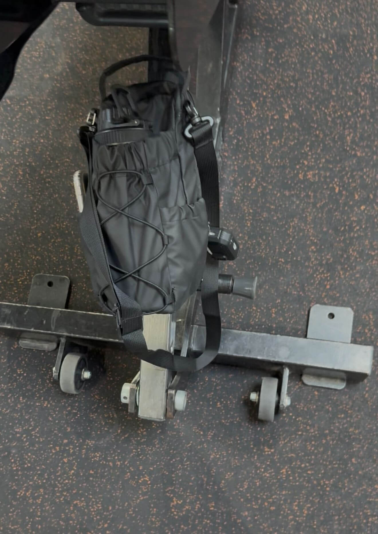Ein Fach für deine Trinkflasche, ein weiteres für Handy, Schlüssel & Co. –alles sitzt sicher, übersichtlich und direkt am Gerät. Kein unnötiges Rumliegen mehr auf dem Boden. So bleibst du fokussiert –ohne Ablenkung, ohne Chaos.