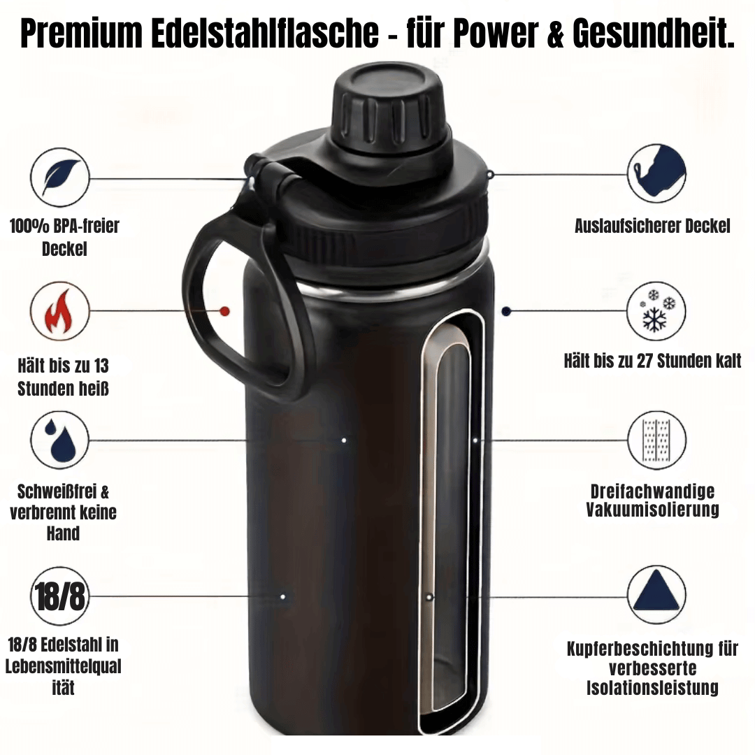 • Die beste Sportflasche, die ich je hatte. Bleibt eiskalt – sogar im Sommer!